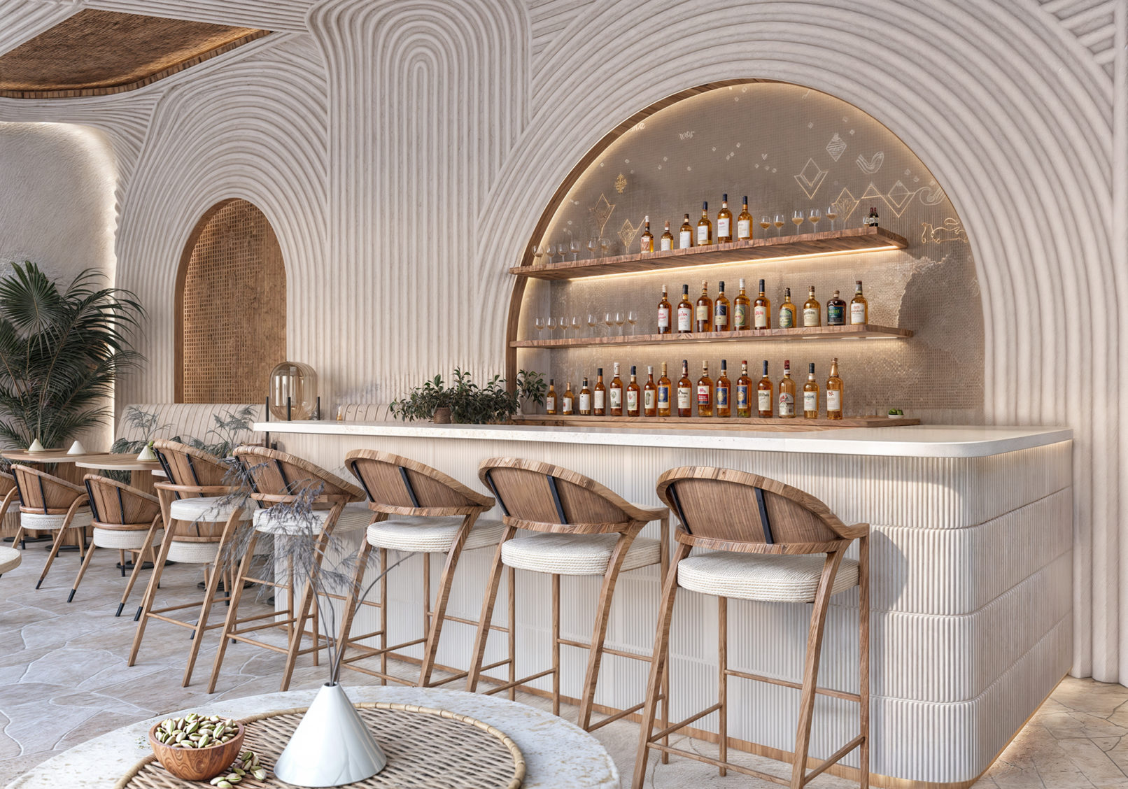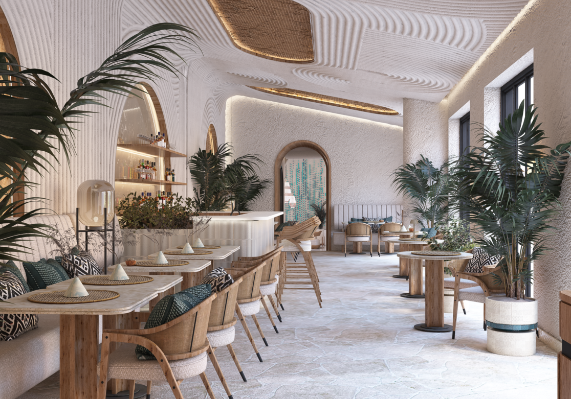 To be consistent with the island DNA, Atelier POD approached the hotel design by following 4 methods and principles to rethink the various hotel spaces: using a mix of materials and contrasting shapes, applying organic lines with a modern touch to emphasize sensuality, recalling nature using engraving, trimming and subtracting, and finally introducing sophistication and refinement into natural materials.