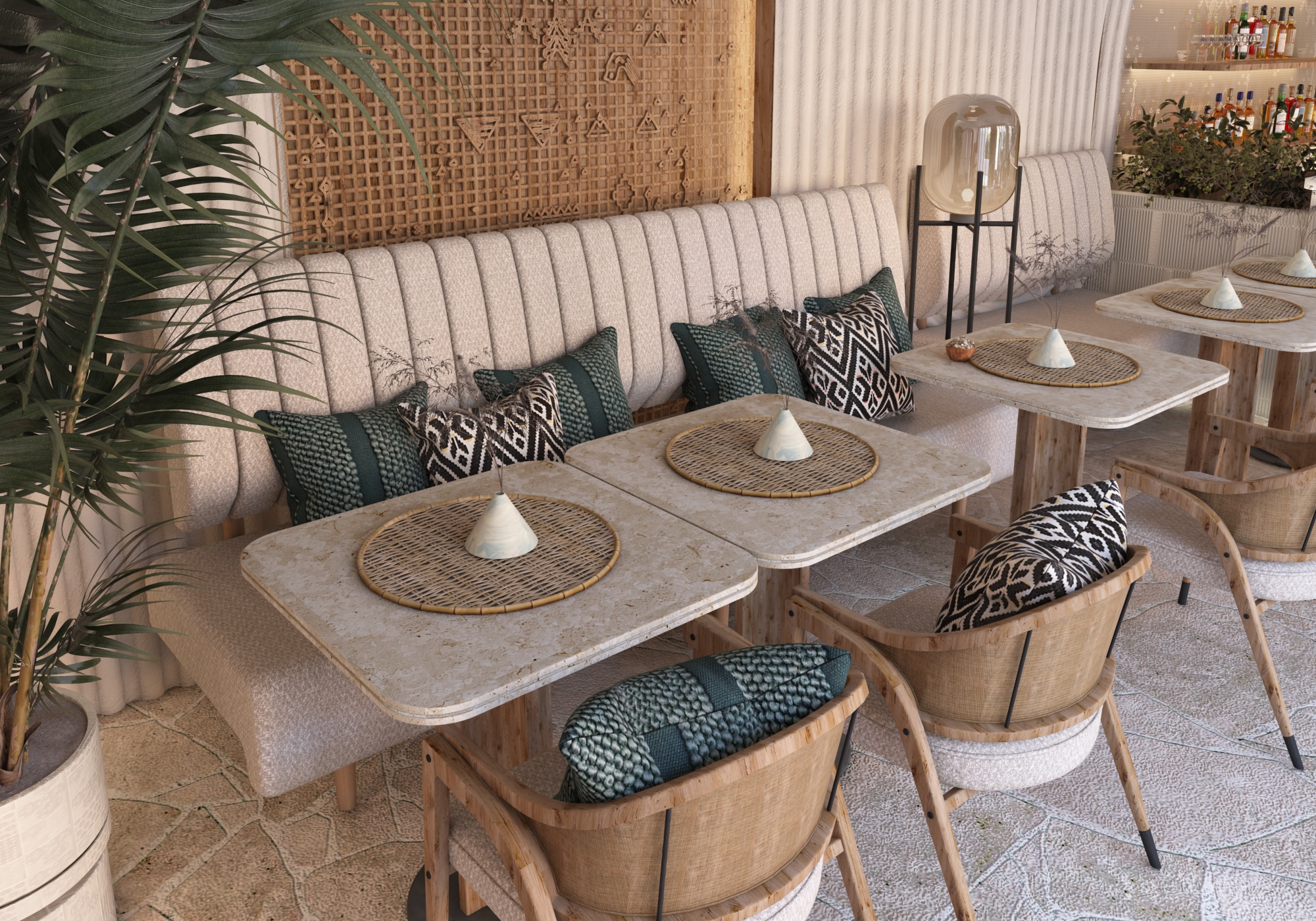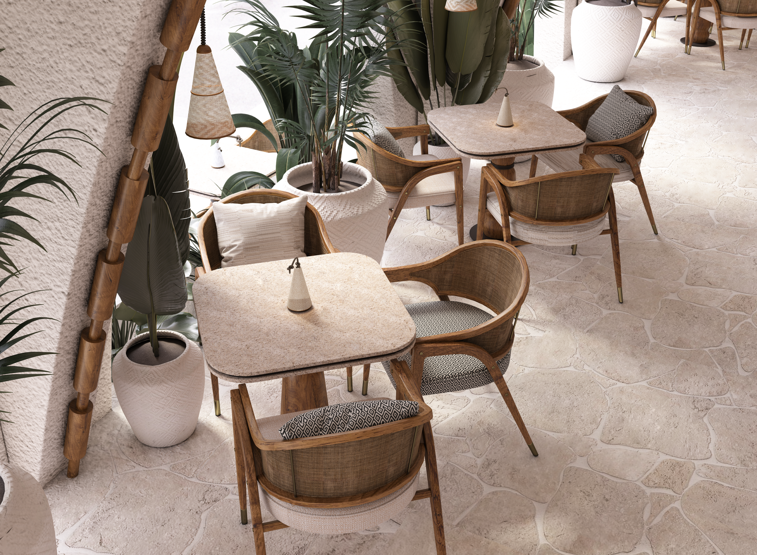 To be consistent with the island DNA, Atelier POD approached the hotel design by following 4 methods and principles to rethink the various hotel spaces: using a mix of materials and contrasting shapes, applying organic lines with a modern touch to emphasize sensuality, recalling nature using engraving, trimming and subtracting, and finally introducing sophistication and refinement into natural materials.
